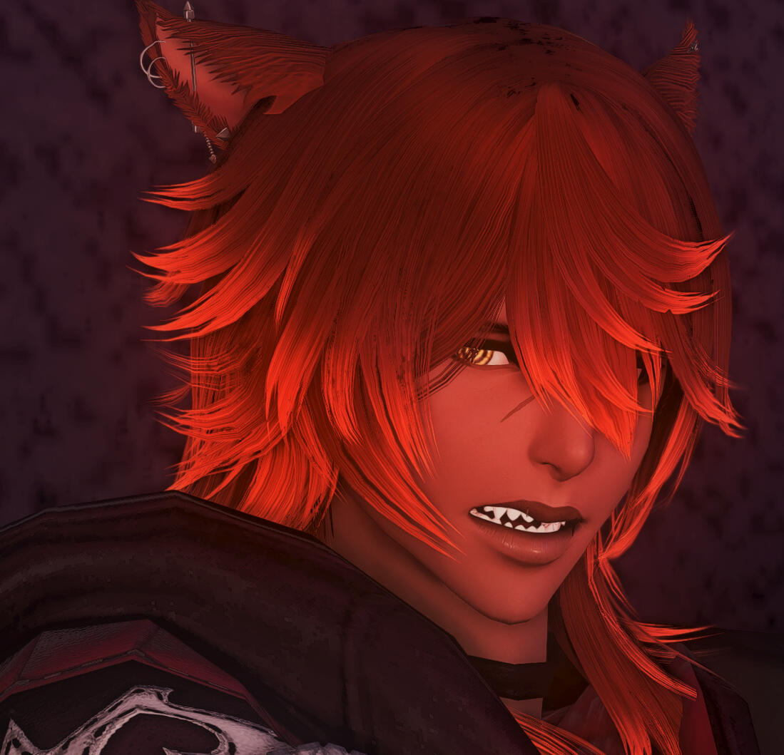 APPEARANCE For a guy who spends most of his time indoors, his body houses enough scars to insinuate quite the dramatic story. Lacerations and burns make their mark all the way down to his fingertips, and his tail looks as though it'd been cropped with how hair fails to grow at its end. Atop it all, there's an ever-present scowl wrought on his features, not to mention the assortment of scars that dragged across his lips and through his eyelid. No...lasting damage, as far as the eye can see.
